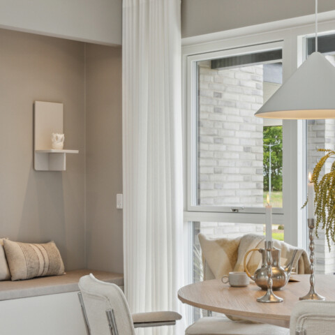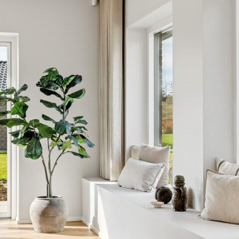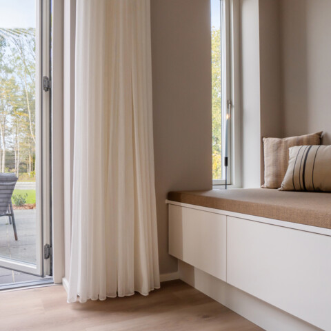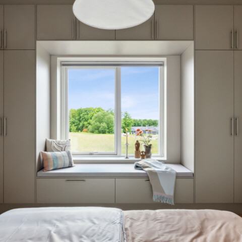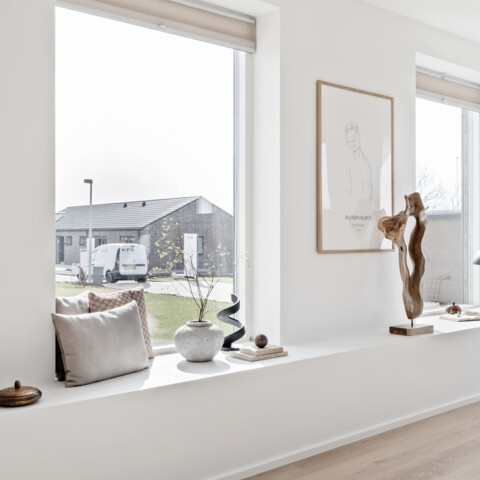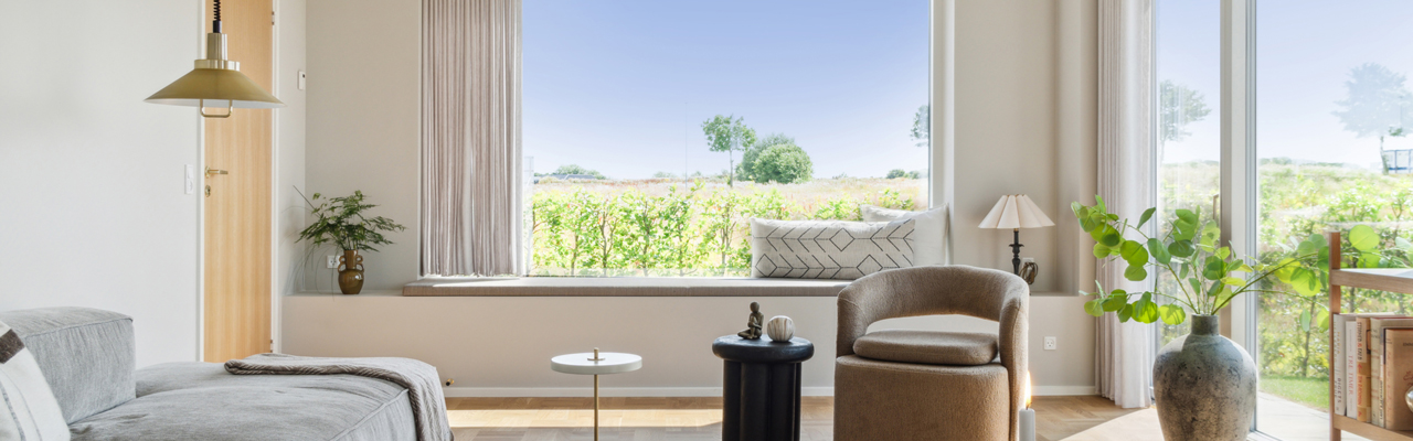 Et stort vinduesparti med en siddeplads kan bruges til både alenetid eller højtlæsning for de yngste, en kop te i egne tanker eller en hyggeplads for to. I vinduet sidder du i dagslyset og tanker op på energi, du kan fornemme vejret og hvile øjnene på udsigten eller haven. Alle sanserne er i spil, når du rykker dig fysisk nærmere naturen i vinduets siddeplads. Samtidigt henter det store vinduesparti masser af lys ind, der kommer resten af rummet til gode, og vinduespladsen skaber basis for nye og mere sanselige oplevelser i dit hjem.