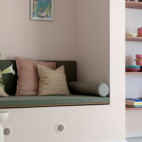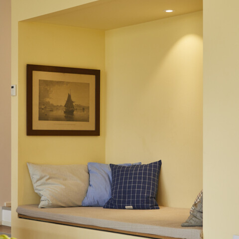 Der er noget særligt indbydende ved alkoven, som mange vælger at placere i køkken-alrummet. En tryg niche i det åbne alrum, vi kan krybe ind i og hygge med en bog eller en god podcast, mens maden snurrer på komfuret. Det kan også være her i alkoven, du vælger at begynde din dag med kaffen – eller et sted, familiens yngste finder ro til at fordøje dagens mange indtryk, mens de voksne laver aftensmad. Indret med bløde puder og hynder, så alkoven bliver indbydende og fungerer som et regulært møbel i rummet.