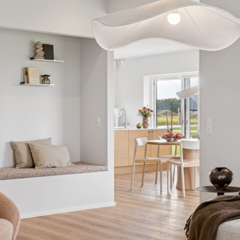 Indret alkoven eller sansevinduet med masser af personlighed, så det imødekommer lige præcis din familie. Hvad med at gøre plads til tomatplanter, man kan sidde og nippe af, når man sidder i vinduet? En frodig planteplads, der i endnu højere grad inviterer naturen indenfor? Eller sæt bogkasser i forlængelse af alkoven og integrer belysning, hvis du vil gøre alkoven til dit favoritspot, når du vil læse. Både alkoven og det dybe vindue har referencer til klassisk dansk bygningskunst, men peger også fremad mod en tid, hvor vores hjem skal opfylde flere behov og fungere som en tryg hule i en stresset tid, som man kan trække sig tilbage til, lade op og finde ro i.