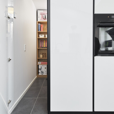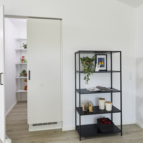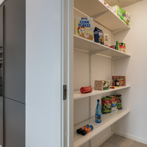 Brug det skjulte depotrum til at skabe overblik over fx dit køkkengrej, antallet af dåser med flåede tomater og poser med pasta. Mange af os kommer alt for ofte til at købe ting ind, som vi allerede har liggende bagerst i skuffer og skabe, og med et praktisk indrettet depotrum kan du hurtigt danne dig et overblik og handle ind derefter. Samtidigt giver det skjulte depotrum dig pladsen til at købe ind i større skala af de ting, som familien bruger allermest – og det er både mere økonomisk og praktisk.