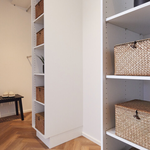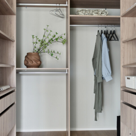 Det kan være en opgave at indrette børneværelser, der kan vokse med barnet. Størrelse, interesser og yndlingsfarver ændrer sig med årene – men det gør behovet for god opbevaring ikke. Tværtimod bliver det ofte større i takt med, at ungerne vokser, og her bliver et walk-in mellem børneværelserne særligt genial. Det integrerede walk-in er nemlig både smart, når ungerne er små og har behov for hjælp til at rydde op – men det er også enhver teenagers drøm. Her kan både store og små nemt danne sig et overblik over garderoben – og der ligger ikke tøj og gemmer sig bagerst i skuffer og skabe. Det er en opbevaringsløsning, der vokser sammen med barnet og kan udvikle sig i takt med, at garderoben bliver større og legetøjsmængden mindre.