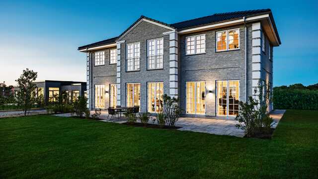 Facaderne er typisk hvide, taget sort og et relativt højt antal smukke vinduer og døre fungerer som dekoration.