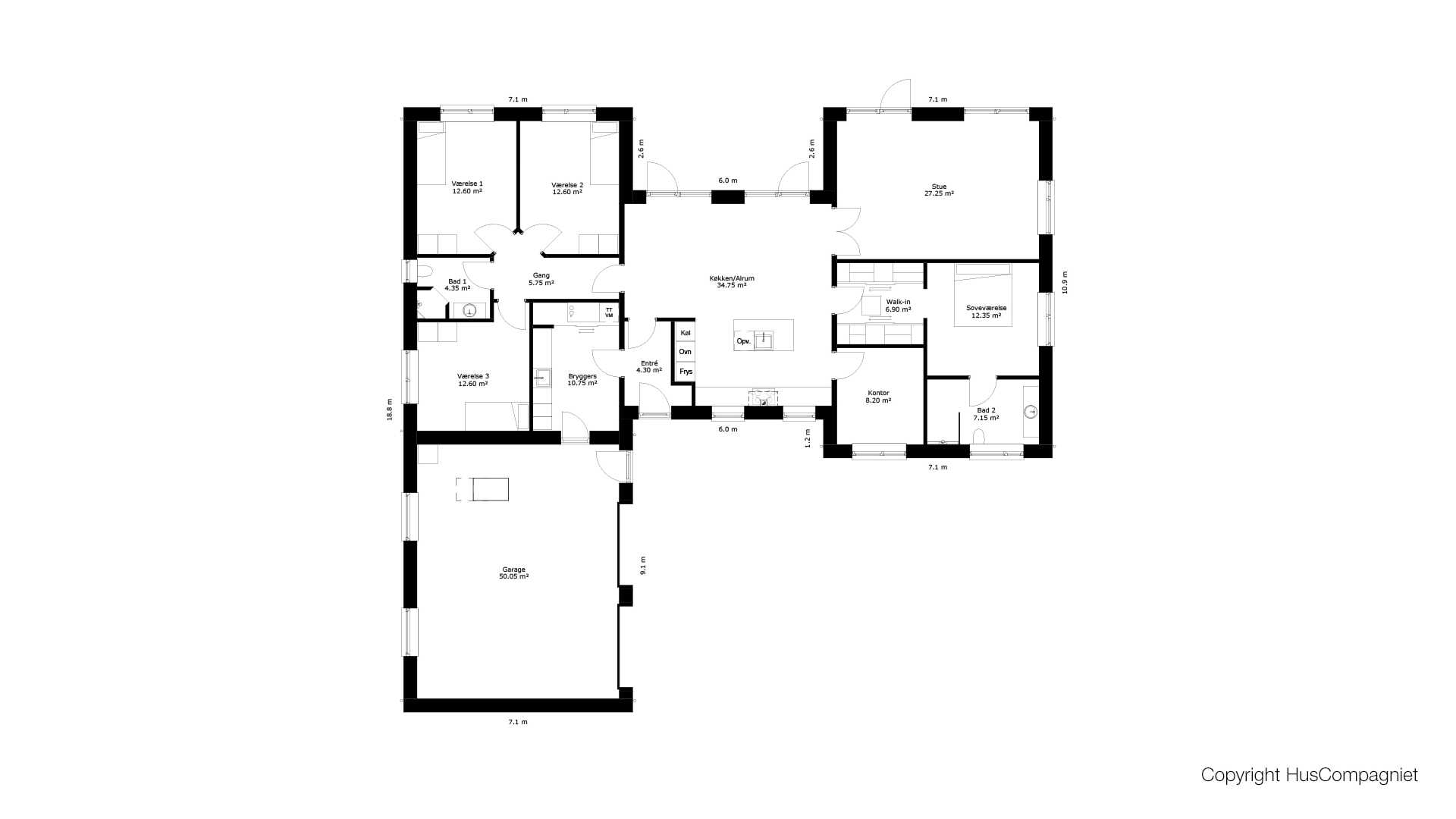 H-huset med det store køkken/alrum som husets hjerte.