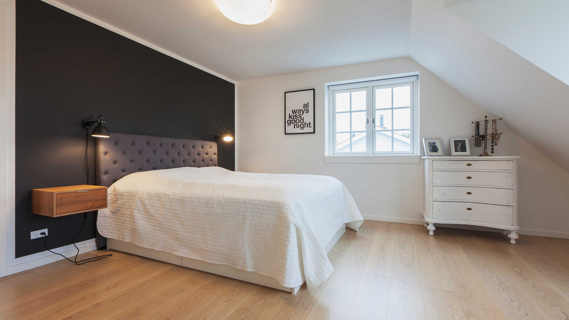 • 1½-plans hus i længehus-stil, som giver hyggelige skråvægge på 1. salen.