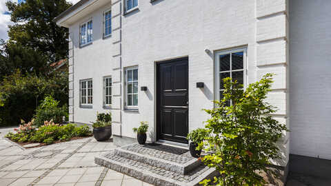 • Detaljeret facade med murede kvader med frontspids med gesimsbånd
