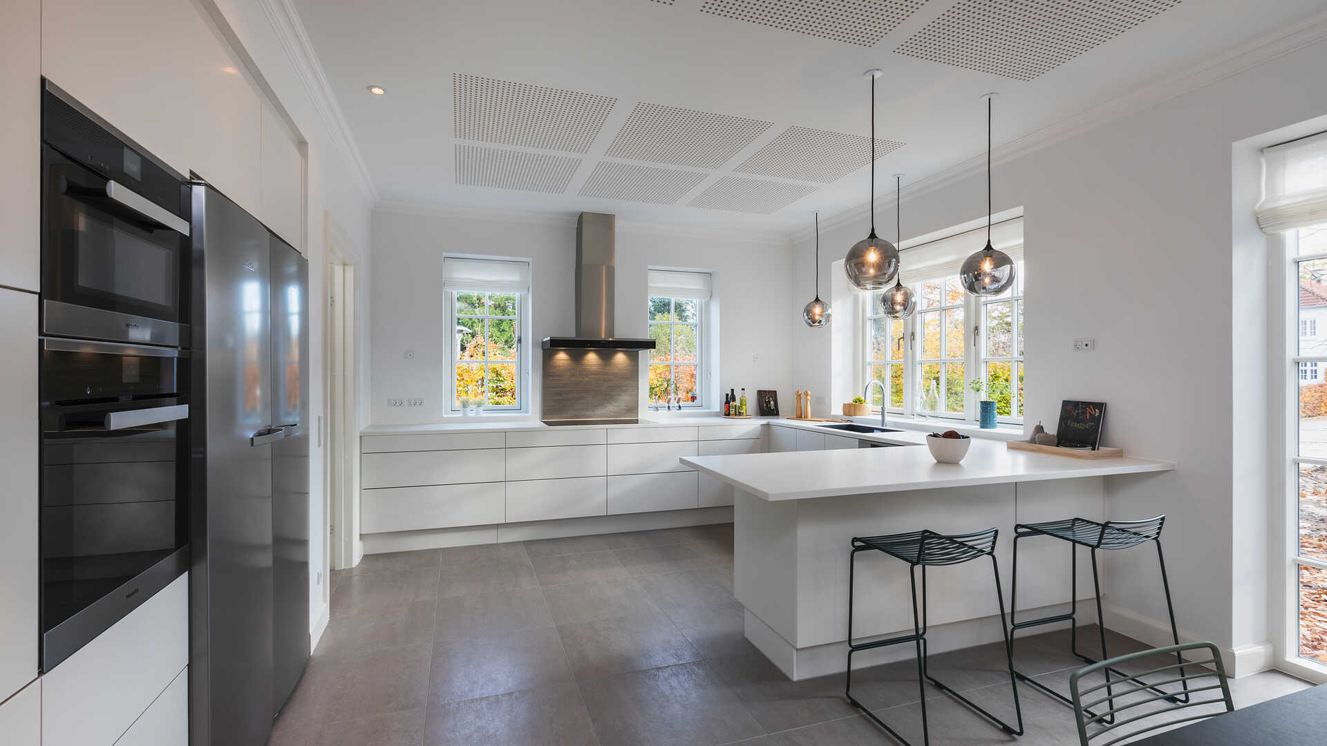 • Huset her opført i to plan og den imponerende indretning indeholder både fem børneværelser og tre badeværelser. Bemærk især det store køkken/alrum med direkte udgang til haven.