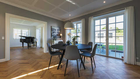 • Unikke gulve med elegant sildebensparket og klinker i mønstre.