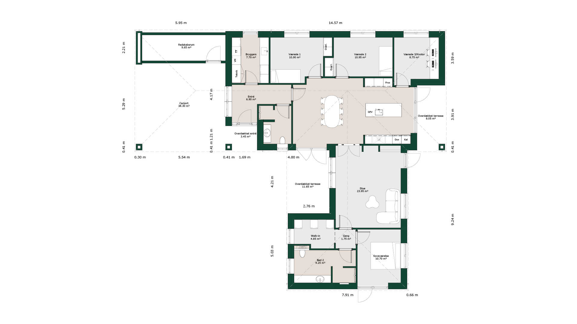 Sammen med din byggerådgiver og tegnestuen kan du flytte vægge, tilføje rum, detaljer og vende og dreje plantegningen, indtil du har netop den plantegning der passer til dig og dit behov.