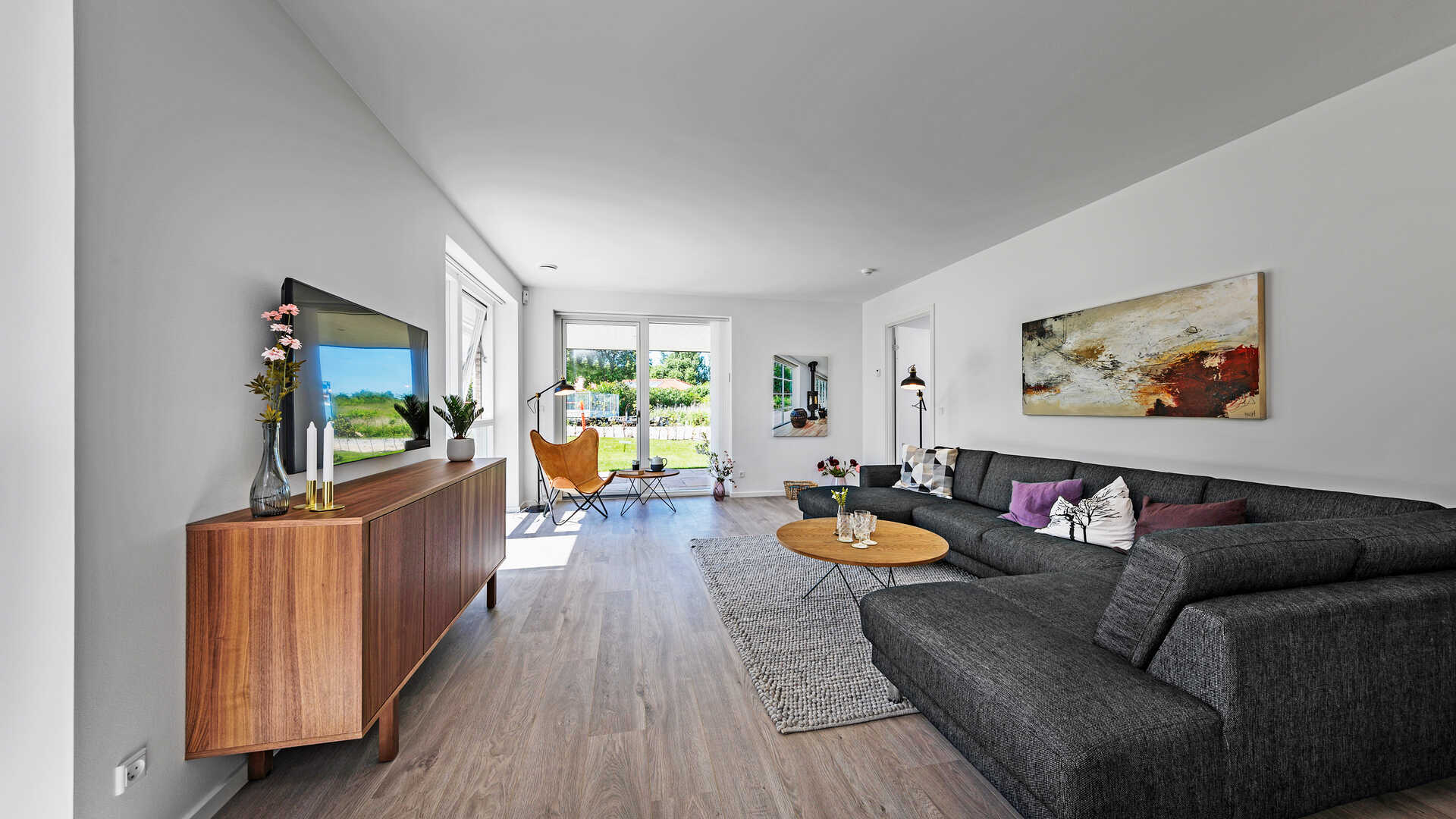 Forskudt vinkelhus med gode rum.