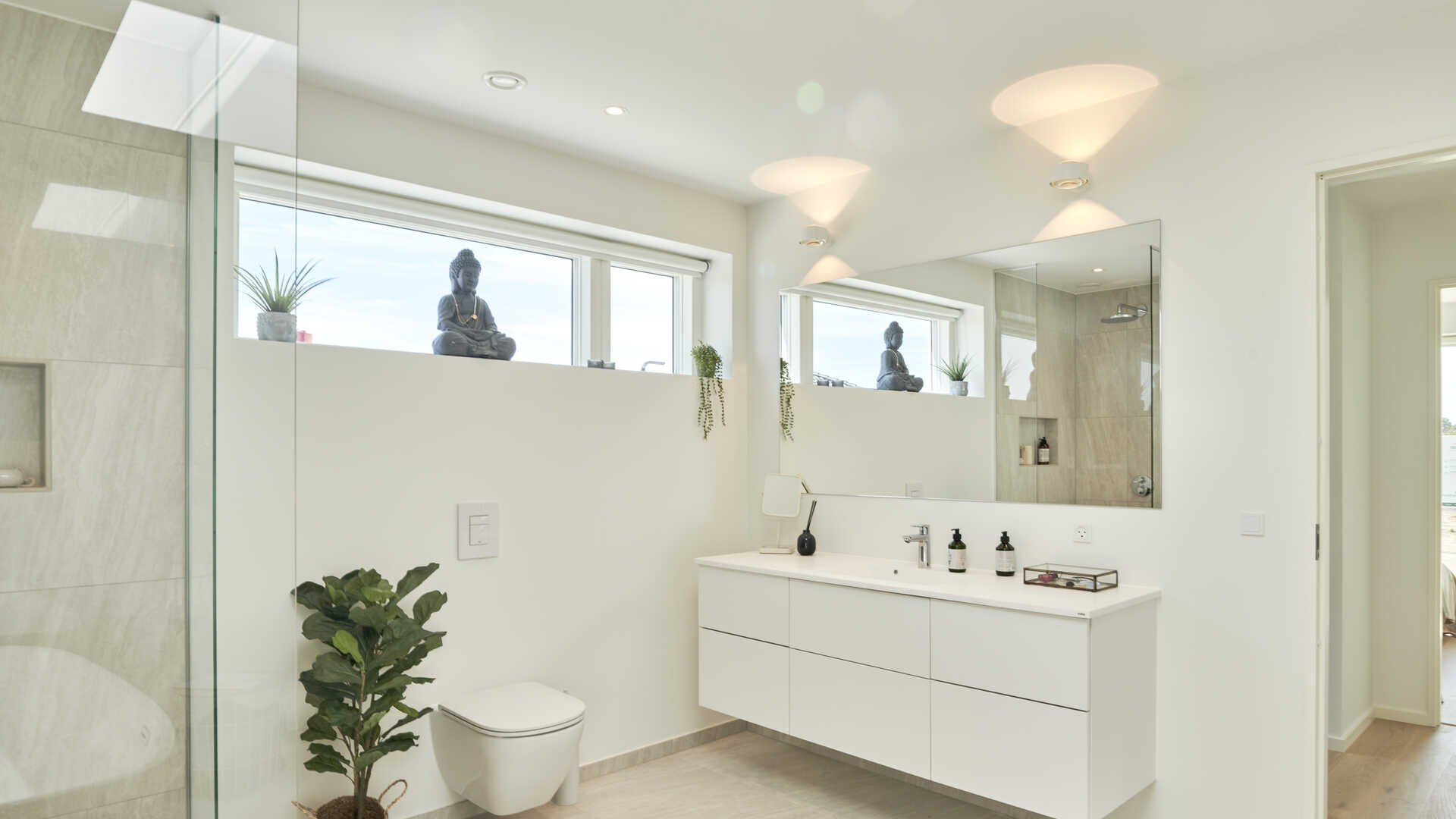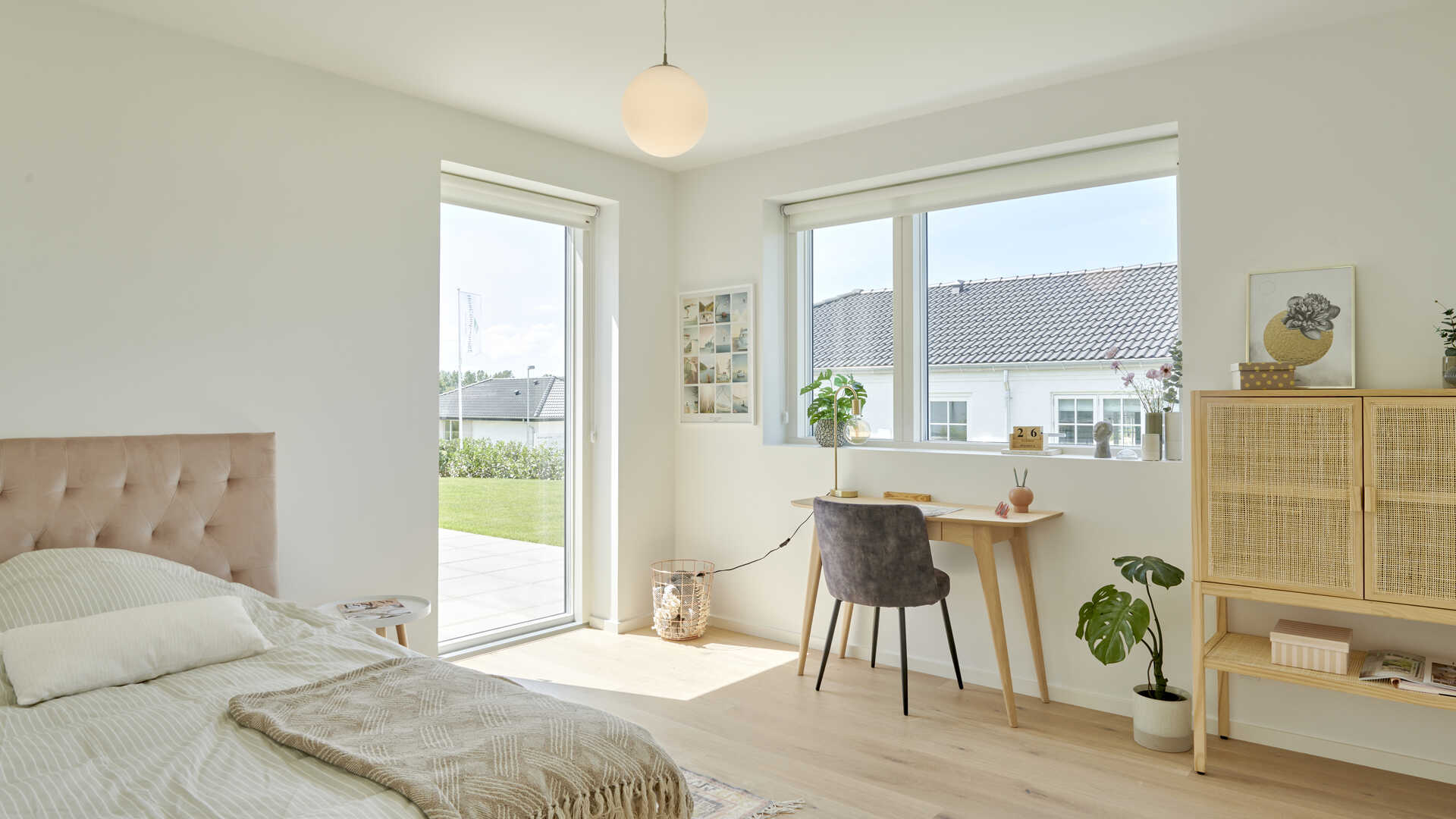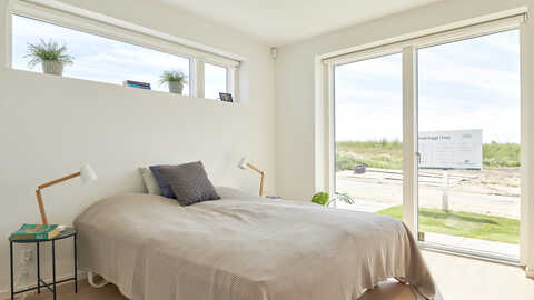 I børneafdelingen er et lyst fællesrum og lækkert badeværelse især værd at bemærke. Og i forældreafdelingen er der både plads til haveudgang, walkin closet og stort badeværelse med