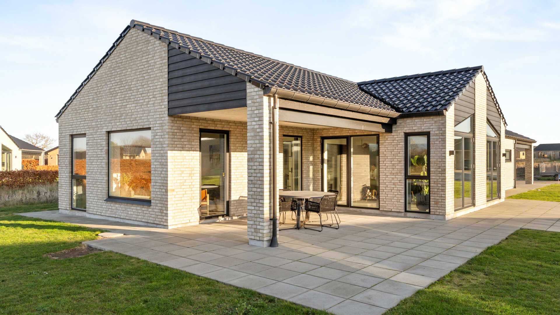 Du kan ankomme via den overdækkede hovedindgang eller gennem den forskudte dobbeltgarage, som har direkte adgang til bryggerset. Herfra træder du ind i en rummelig entré og fordelingsgang, der giver adgang til tre gode værelser og et badeværelse.