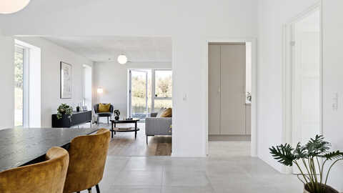 Veludnyttet længehus på 120 m2 med carport. Indgangen leder til en rummelig entré med garderobeplads og et ekstra stort bryggers, der tilbyder masser af opbevaringsplads. De tre gode værelser inkluderer et soveværelse med en stor skabsvæg og to børneværelser. Det store køkken/alrum er hjertet i huset og imponerer med et skråloft og et stort vinduesparti, der giver masser af lys og luft samt direkte adgang til terrassen. Ligeledes er stuens endegavl udstyret med et stort vinduesparti, der åbner op til terrassen og haven.