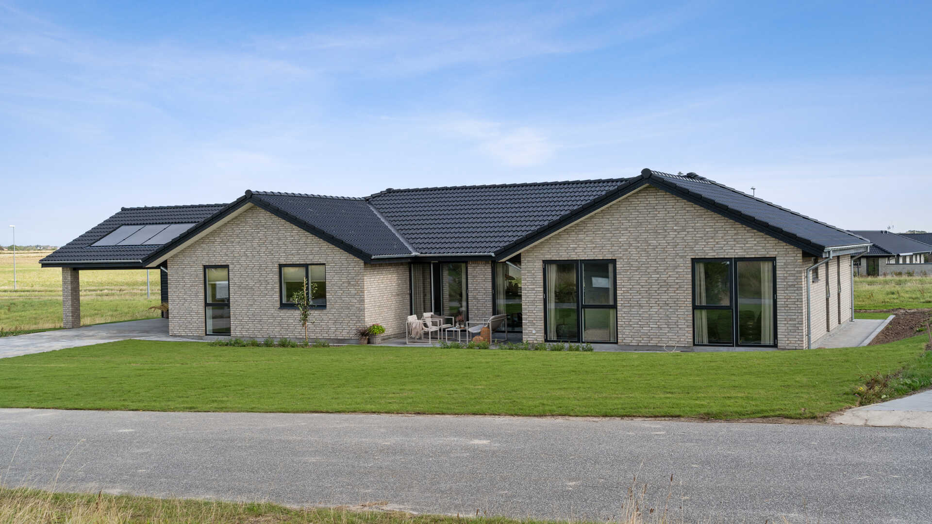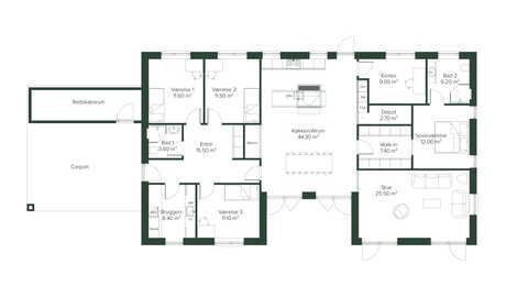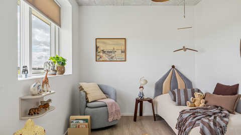 En separat børneafdeling med tre lyse værelser og et eget badeværelse giver børnene mulighed for privatliv og fri leg. Derudover byder huset på et praktisk køkkendepot, der giver ekstra opbevaringsplads.