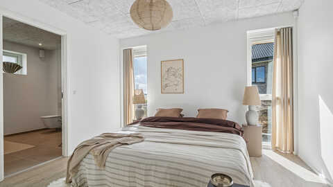 Voksenafdeling med et stort soveværelse, walk-in closet og badeværelse – et skønt frirum med fokus på komfort og luksus.