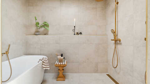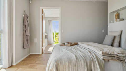 Den luksuriøse voksenafdeling har et rummeligt soveværelse med indbygget natbordshylde, påklædningsområde med masser af skabsplads, stort badeværelse med dobbeltbrus og badekar.