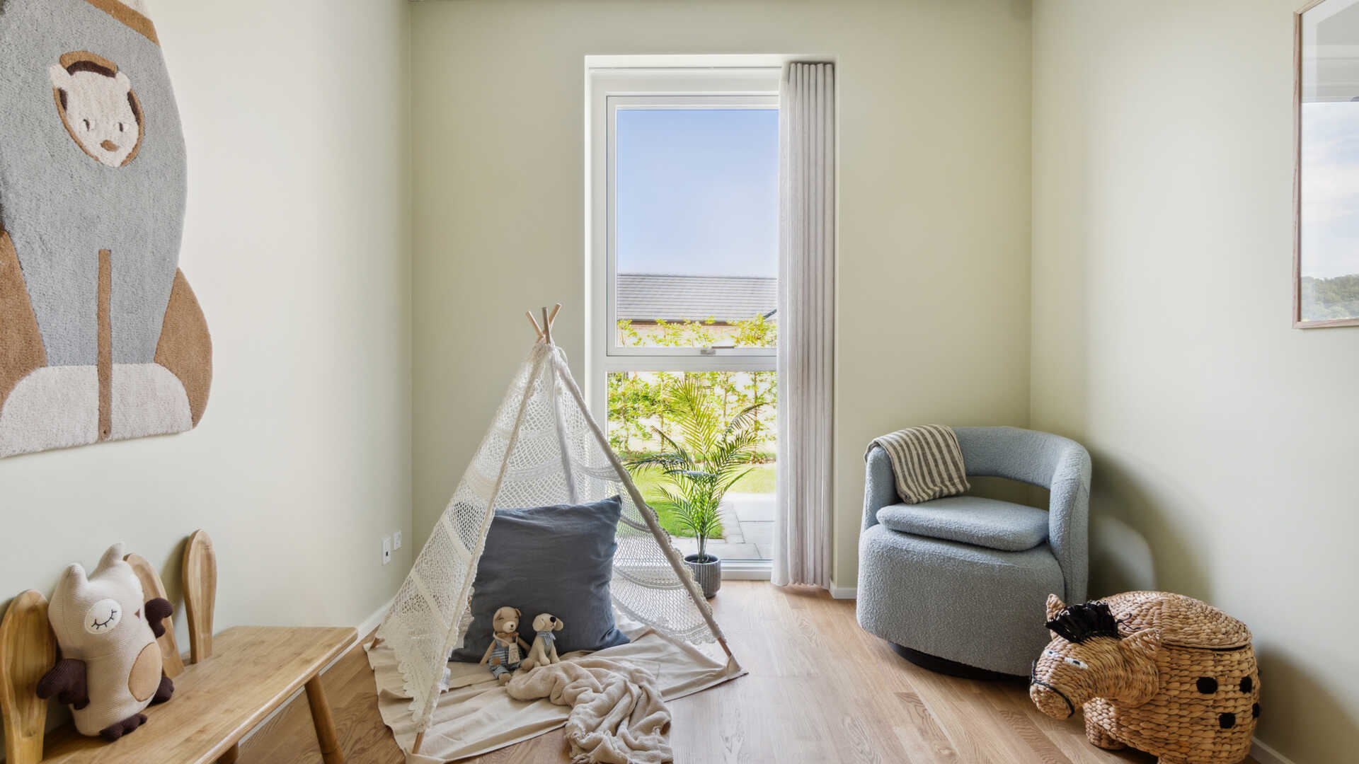 Den rummelige børneafdeling med tre gode værelser, hvoraf de to er med walk-in ligger i separat afdeling sammen med husets andet badeværelse.
