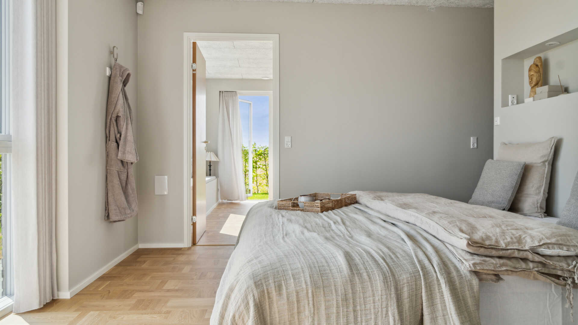 Hele boligen oser af kvalitet og moderne detaljer, sammensat af farvenuancer, der giver en eksklusivitet og hygge til boligen.
