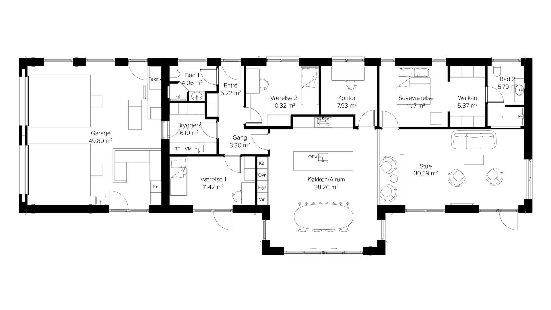 Den funktionelle og spændende planløsning på 166 m2 og dobbelt garage imødeser de fleste familiers behov.