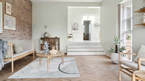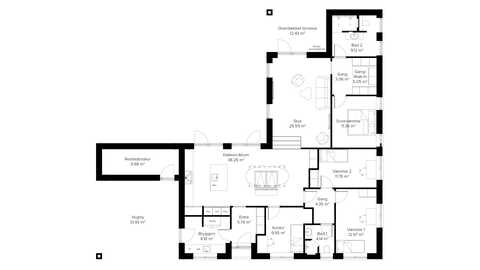 Huset byder på en spændende planløsning med forskudt niveau, der giver ekstra loftshøjde på hele 3 meter i stuen og voksenafdelingen.