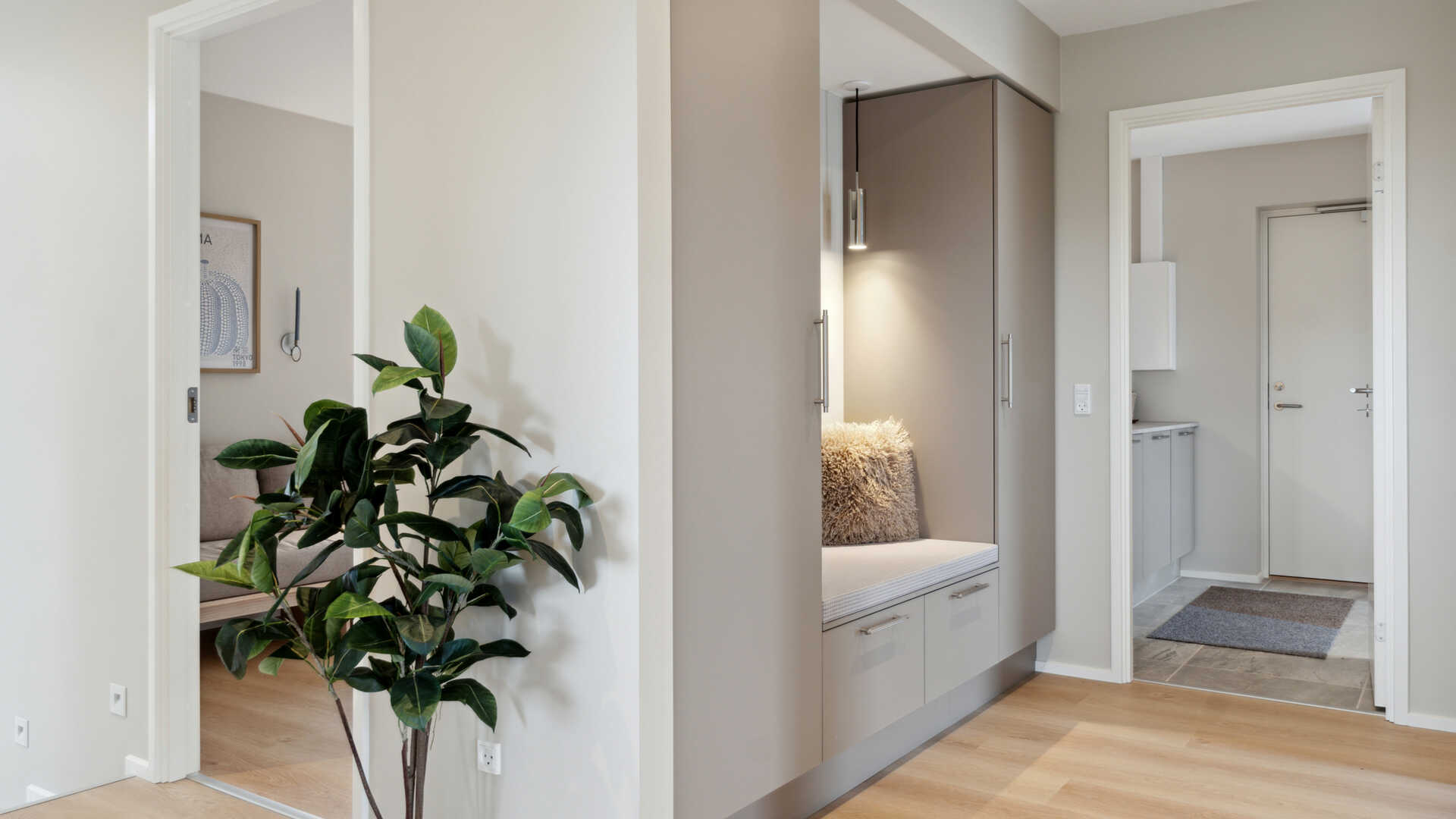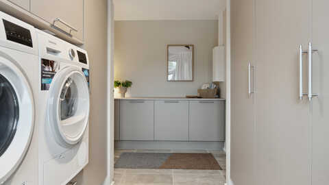 Husets praktiske bryggers ligger i forbindelse med indgang fra garagen og har masser af opbevaringsplads. Den dobbelte garage og det praktiske skraldeskjul/cykelskur giver god opbevaring og gør hverdagens praktik lettere.