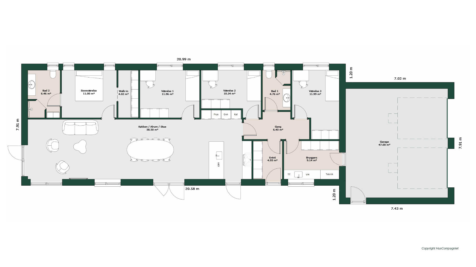 Fantastisk hus til grunden hvor der kan være udsigtsområder. Åbent køkken/alrum og stue i forlængelse i næsten hele den ene langside. Det giver mulighed for at samles mange gæster. God børneafdeling med eget bad samt ekstra værelse til f.eks. hjemmekontor i forbindelse med køkkenet.