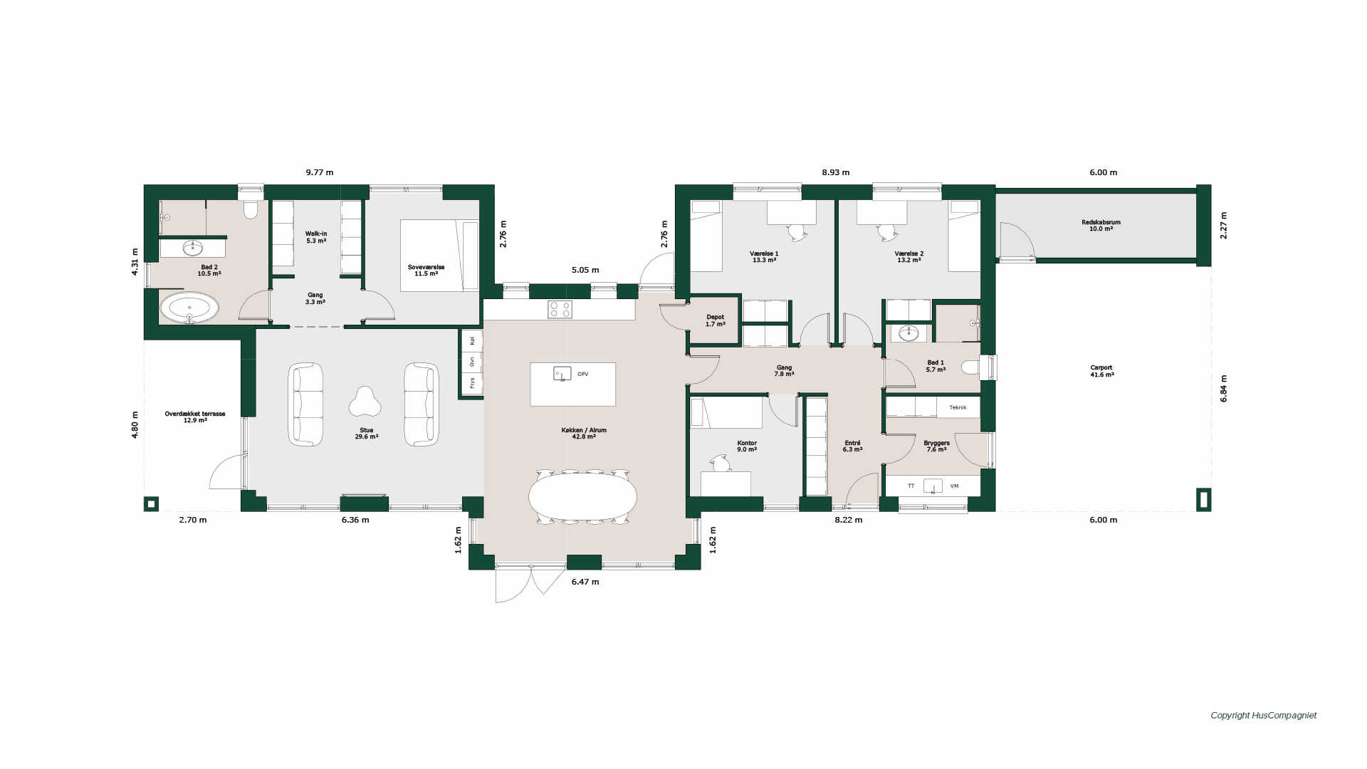 Dobbelt forskudt hus med super god planløsning. Huset indeholder to store børneværelser med plads til indbyggede skabe. Stort kontor/gæsteværelse, samt stort badeværelse. Entré med masser af skabsplads. Stort gennemgående køkken/alrum med udgang til begge sider af huset. Rummelig stue med udgang til den overdækkede terrasse. Forældreafdeling består af et lækkert badeværelse, walk-in og soveværelse.