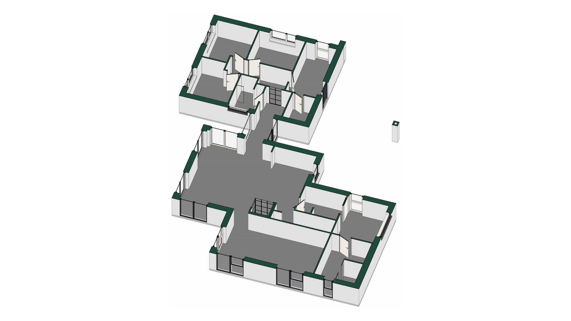 En spændende forskudt planløsning med separat børne/teenageafdeling med tre værelser, badeværelse og egen indgang via husets bryggers.