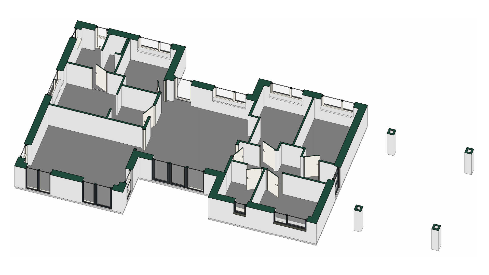 Her er indrettet til to børn med en lækker børneafdeling med eget bad og det praktiske bryggers samt entré i den ene ende af huset. I midten er et lyst køkken/alrum, mens der i den anden ende er en stor stue samt kontor/gæsteværelse og ikke mindst forældreafdelingen med både walk-through og eget badeværelse med en rummelig bruseniche. Husets form giver mulighed for gode terrasser og lækroge på begge sider af huset.