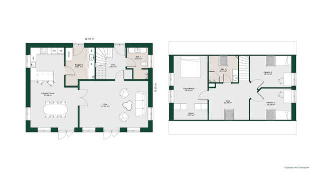 Fint 1½-plans hus med værelser, aktivitetsrum, badeværelse og soveværelse med walk-in på 1. salen. I stueetagen finder man husets store opholdsrum, der indbyder til samvær og hygge i køkkenet, omkring spisebordet eller i stuen. De store vinduespartier giver samtidig et godt lysindfald og fint kig til haven. Entréen ligger centralt i huset, hvor der fra gangen er trappe til 1. salen, adgang til køkken/alrum og husets gæstebadeværelse. I køkkenet er der desuden adgang til depot, der giver ekstra plads til opbevaring.