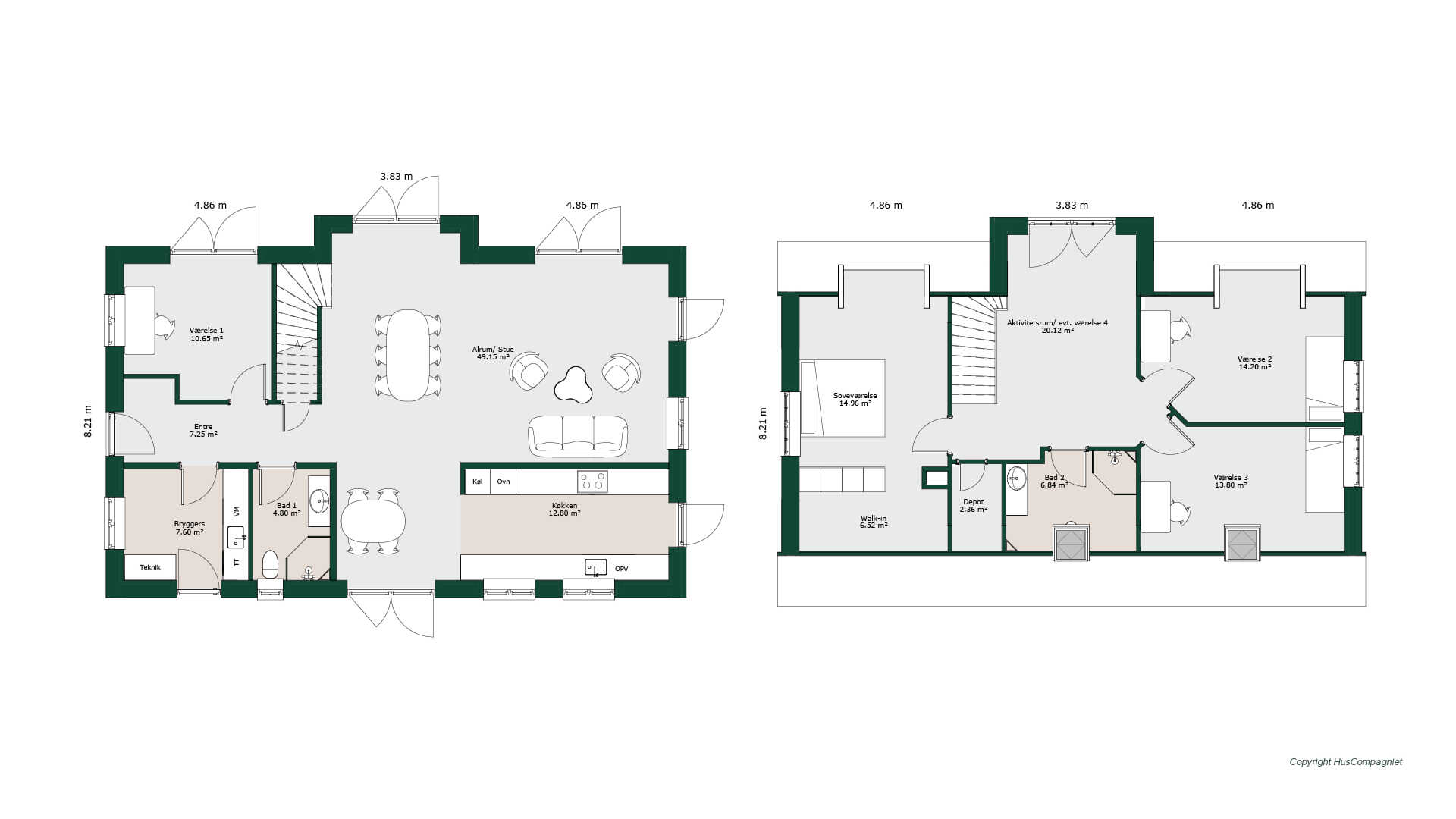 Denne funktionelle indretning byder på køkkenområde med mindre spiseplads og stor spisestue/stue i ét. Desuden er der kontor/gæsteværelse i stueetagen, mens husets øvrige to store børneværelser og et særdeles rummeligt soveværelse ligger på første sal. På første sal rummer huset også praktisk depot og stor repos hvor der er mulighed for at skabe et multirum eller lukke af og få et fjerde værelse.
