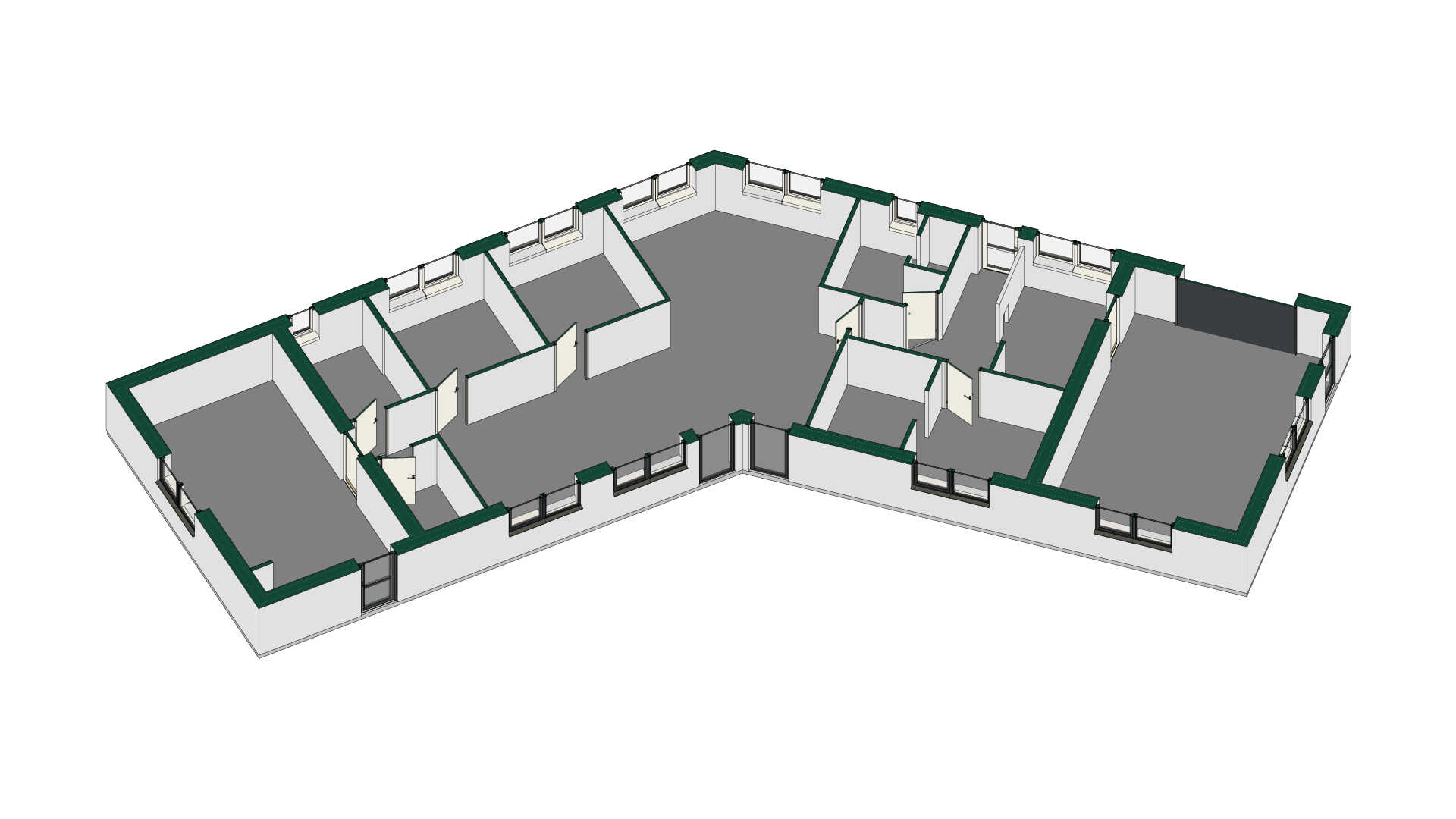 Fra køkken/alrummet er der adgang til to gode værelser, depot og badeværelse samt udgang til husets praktiske udhus, der er opført i samme stil og materialer som resten af boligen, hvilket sikrer en lang række udnyttelsesmuligheder.