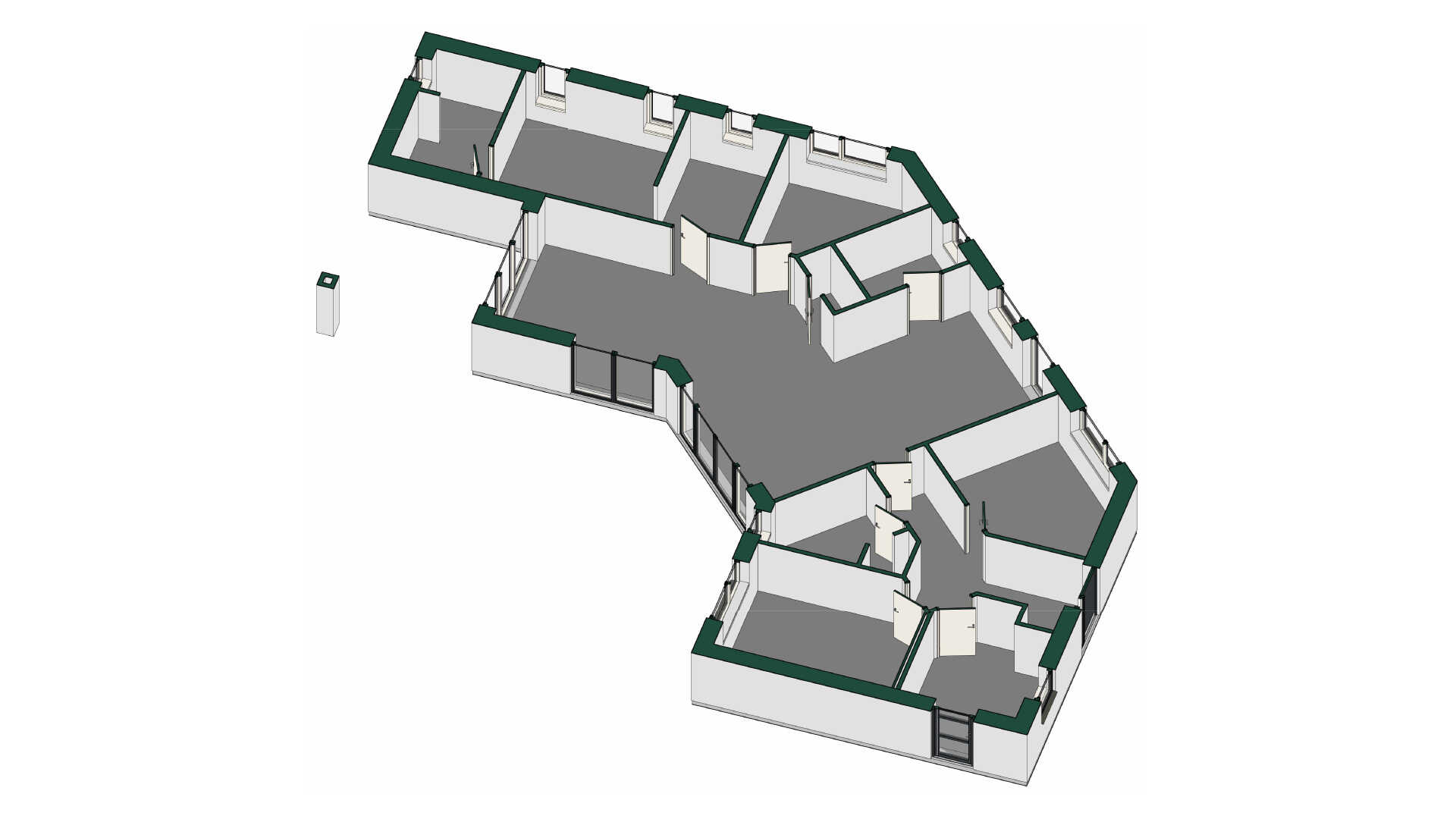 I dette dobbelte knækhus finder vi værelsesafdelingen med to store værelser samt eget badeværelse i direkte forbindelse med husets entré og det praktiske bryggers med god plads til de daglige gøremål.