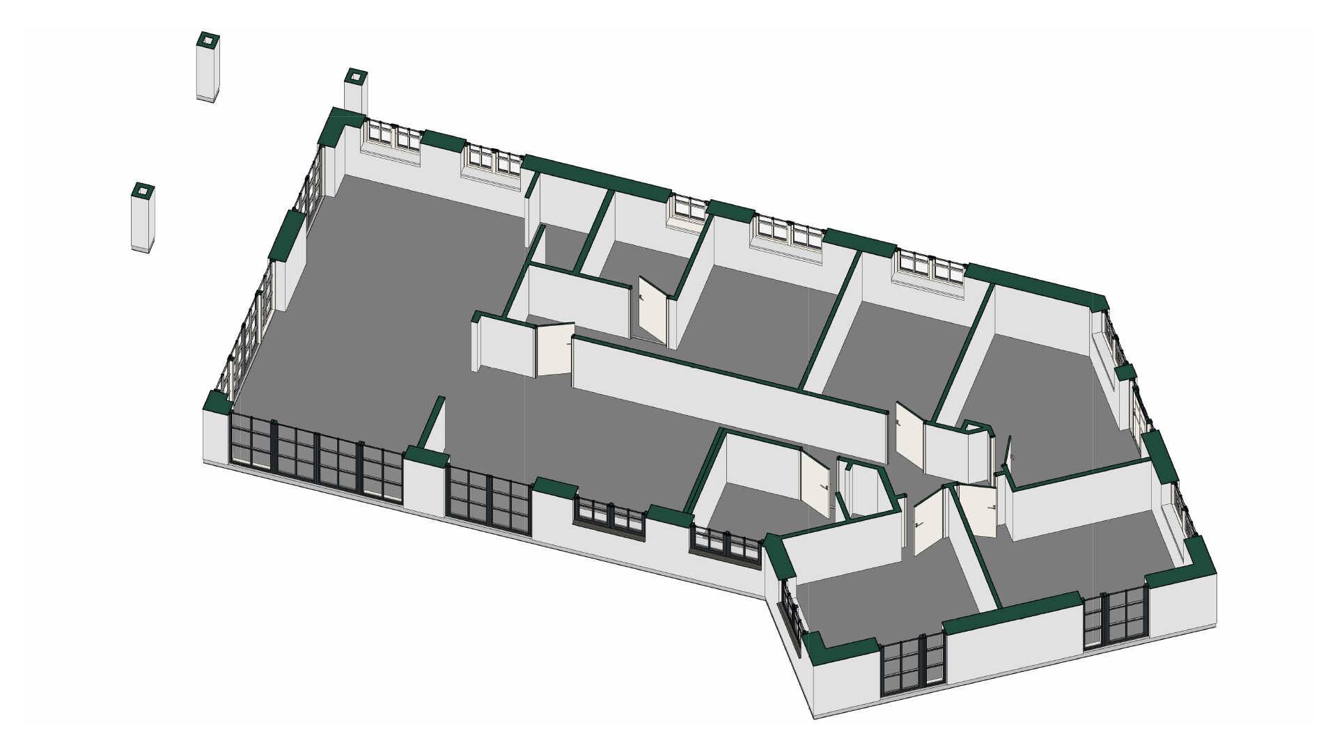 Endelig finder vi værelsesafdelingen i den anden ende af huset, hvor der er samlet to store værelser, et badeværelse med fritstående badekar, et praktisk og rummeligt kontor samt kombineret bryggers/entré.