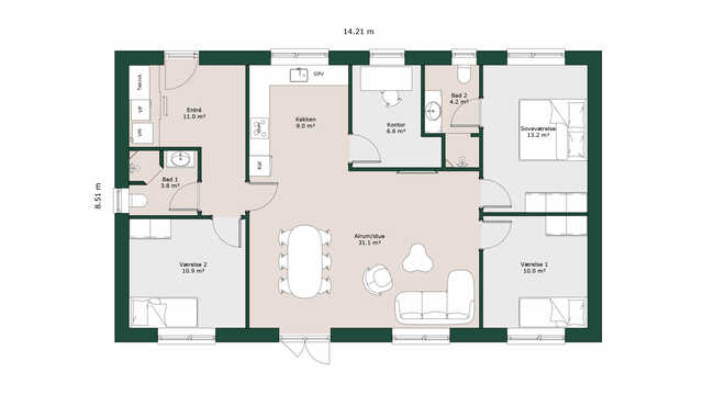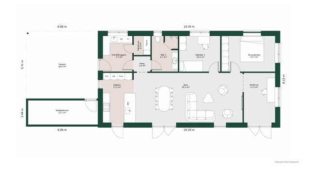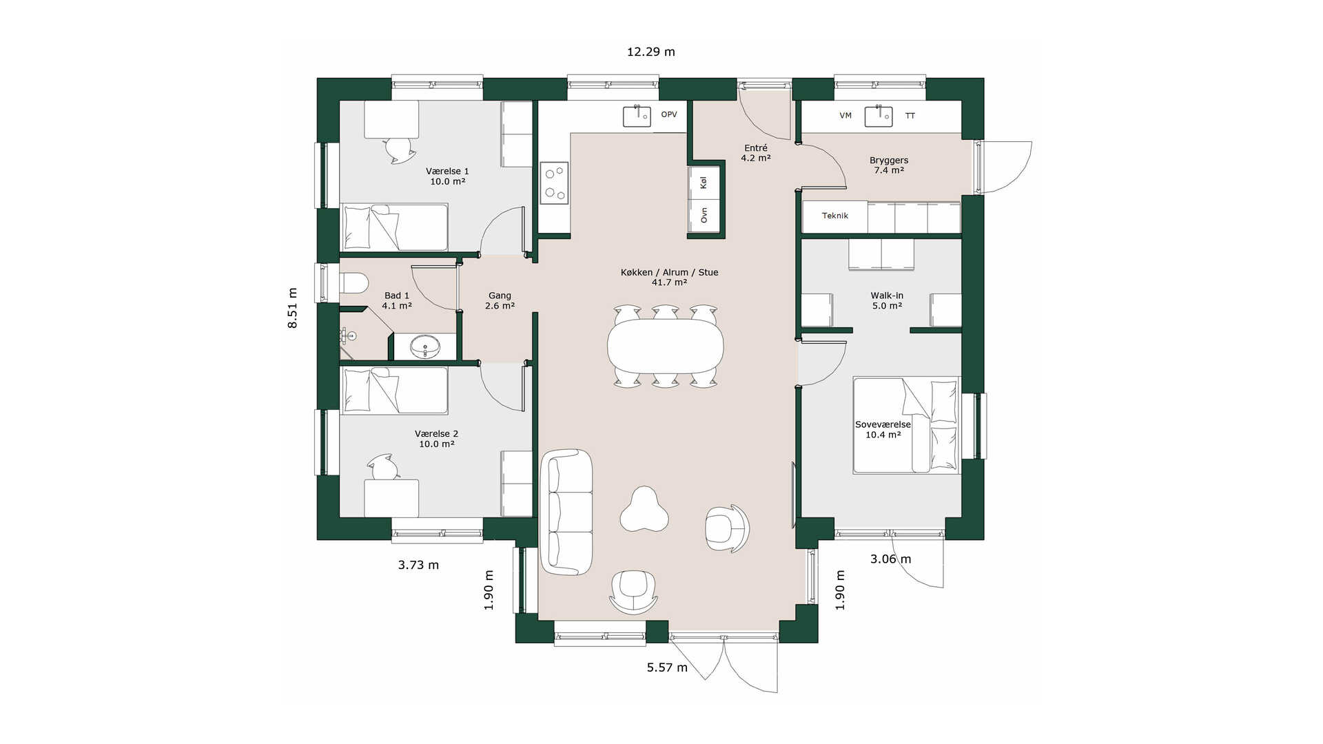 115 m2 vinkelhus Optimeret planløsning til den lille familie. Planløsningen byder på stort åbent køkken/alrum i forbindelse med stuen samt forældreafdeling med walk-in. Huset rummer derudover to gode værelser, badeværelse og praktisk bryggers. Relaterede plantegninger Længehus 104 m2 3 værelser Længehus 110 m2 3 værelser Længehus 121 m2 4 værelser Længehus 125 m2 3 værelser Længehus 125 m2 3 værelser Længehus 125 m2 3 værelser Længehus 125 m2 2 værelser Længehus 125 m2 2 værelser Længehus 125 m2 3 værelser Længehus 125 m2 3 værelser Længehus 125 m2 3 værelser Længehus 125 m2 3 værelser