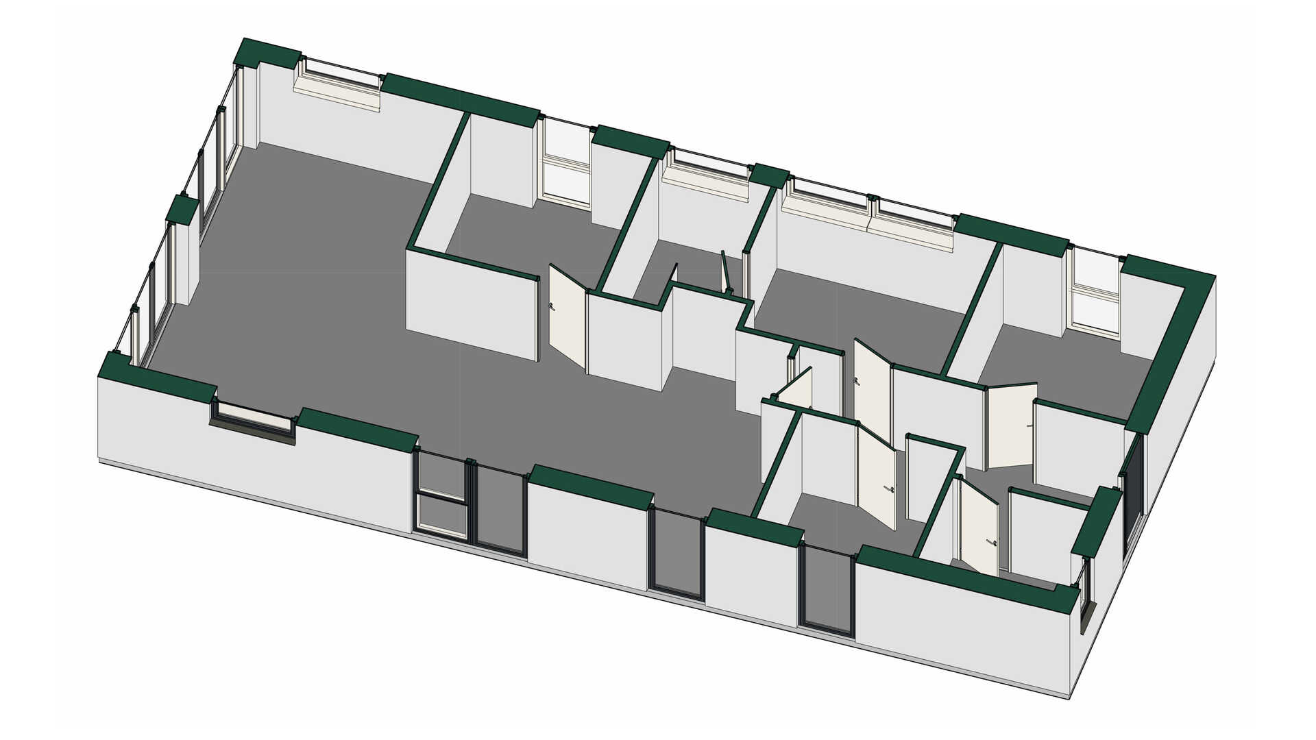 Et stort og lyst køkken/alrum i åben forbindelse med vinkelstue skaber husets leverum. Her er udgang til terrasser og lysindfald fra hele tre sider. Husets værelser ligger på række og har alle god opbevaringsplads i skabsvægge. Forældresoveværelset har adgang til eget badeværelse.