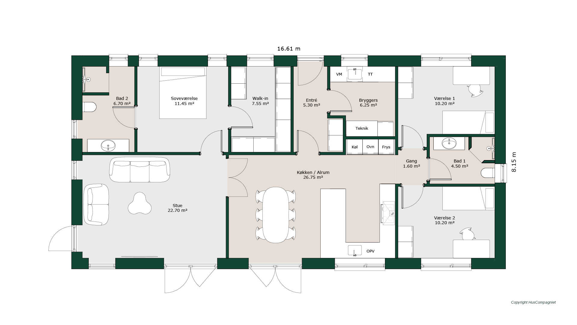 Her kommer man langt på få kvadratmeter. En rigtig fin planløsning til den lille familie.