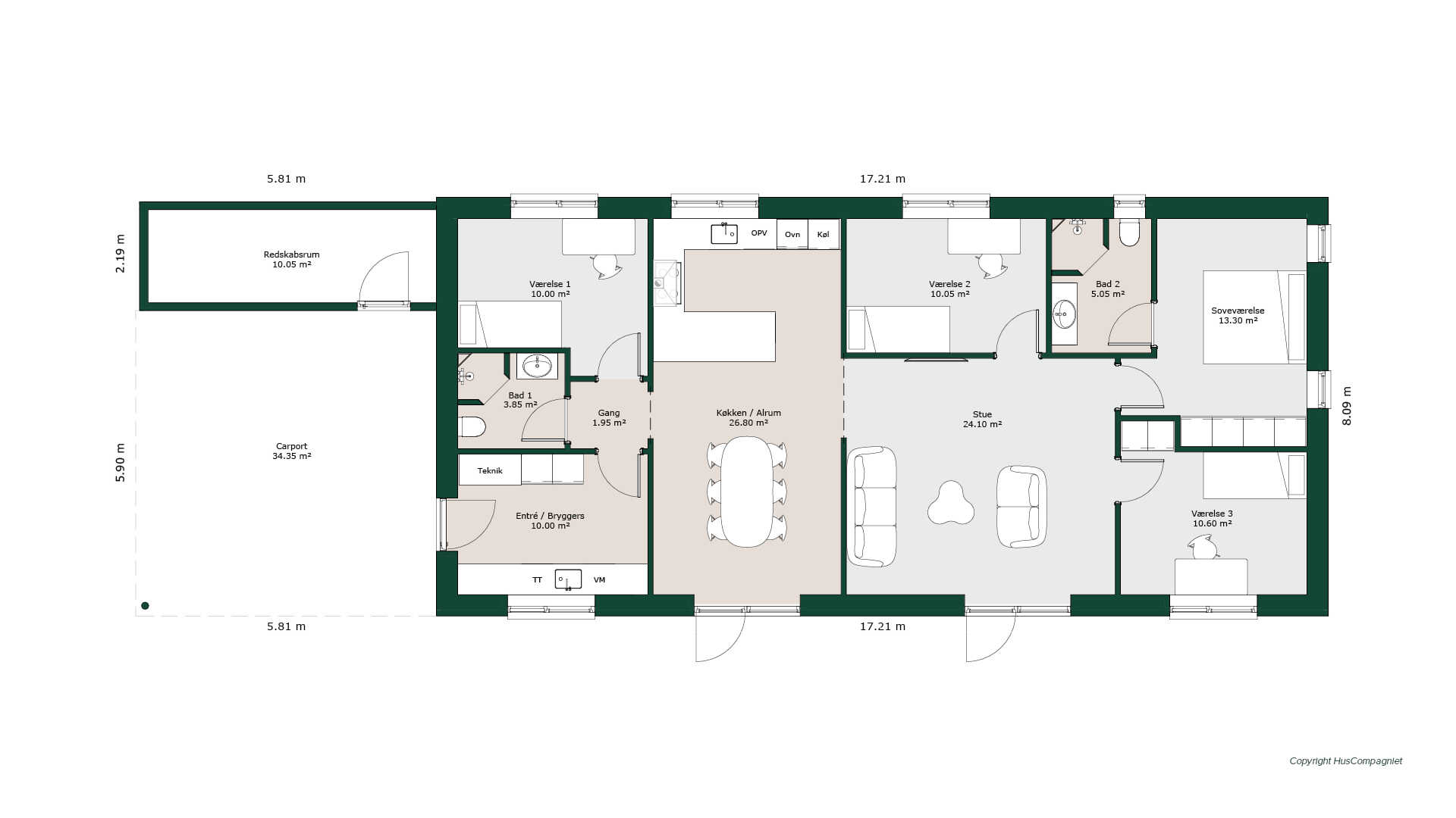 Super godt indrettet lille kompakt hus. Her er der ingen spild plads. Her får I tre gode børneværelser, samt kombineret bryggers/entre. Fra entréen går I ind I det gennemgående køkken/alrum, hvor I får lys fra begge sider. Alrummet har åben forbindelse til den rummelige stue. Forældreafdeling med eget badeværelse.