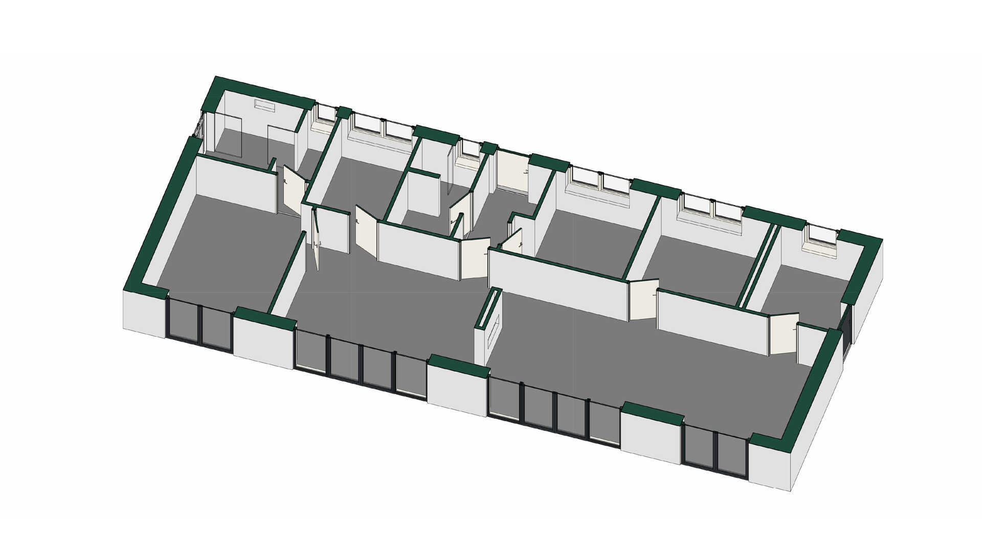 Her oplever man virkelig det er et længehus. Næsten hele husets længe rummer køkken, alrum og stue i ét, - dog afskærmet af skillevæg med biopejs. De mange udgange skaber en lys og luftig rumfølelse. Forældreafdelingen byder på stort soveværelse med to skabsvægge og badeværelse med dobbelt bruser. Her er to gode børneværelse og et mindre kontor.