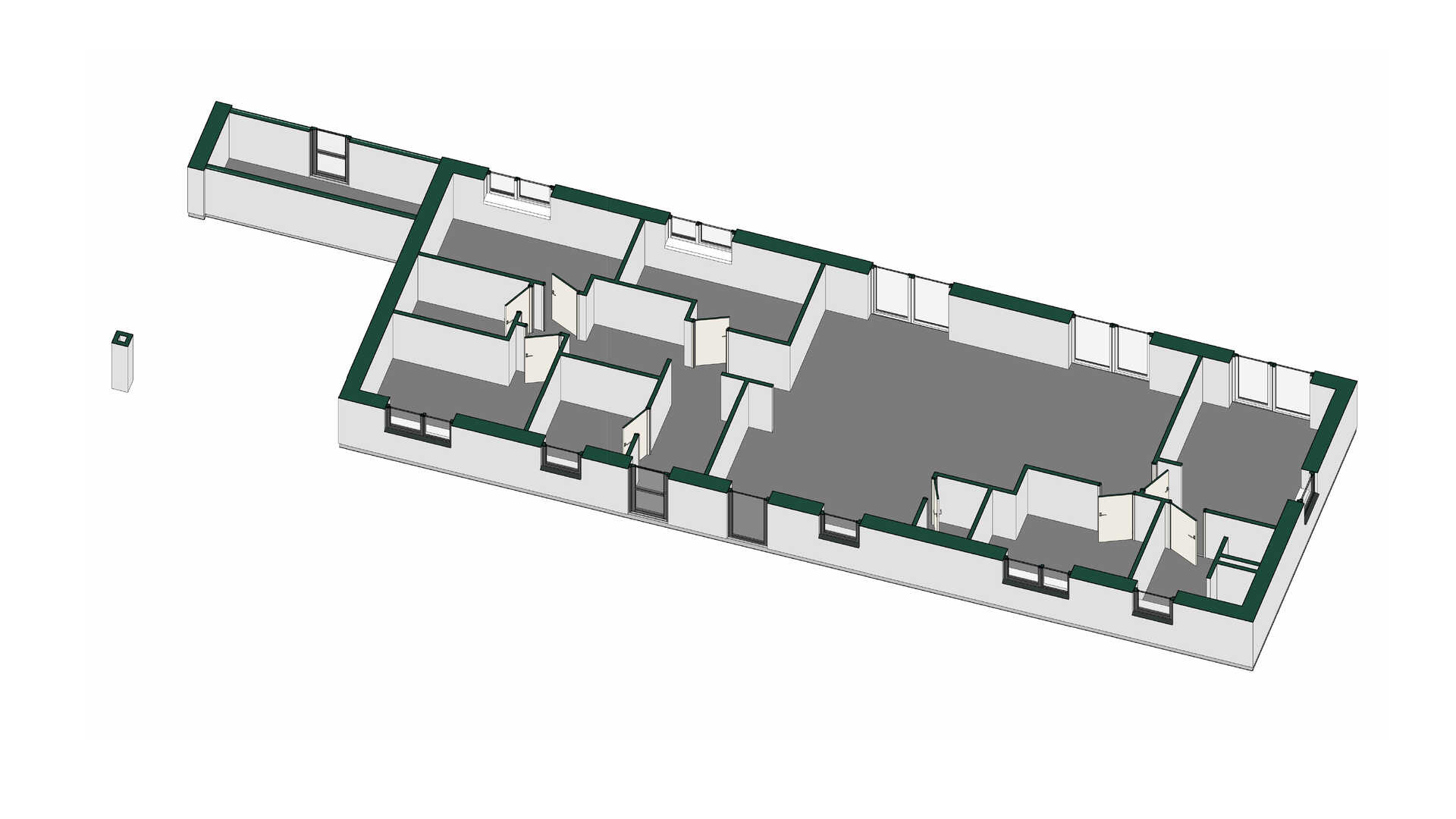 Børneafdelingen med tre store værelser ligger separat i husets ene ende og har eget badeværelse. I denne afdeling ligger også husets bryggers og entré.