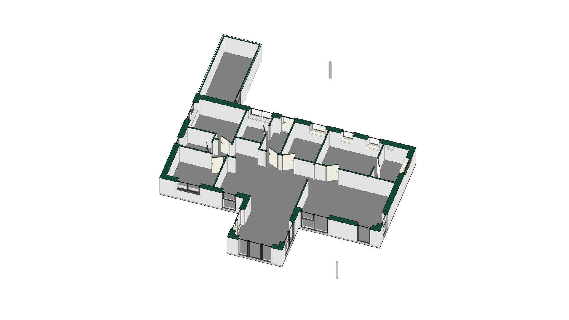 Fra køkken/alrummet har du direkte adgang til børneafdelingen med to store værelser og et badeværelse der er forbundet af en lille gang. Køkken/alrummet er ligeledes forbundet med et kontor samt en stor lys opholdsstue med udgang til overdækket terrasse. Forældreafdelingen består af et stort soveværelse samt eget bad.
