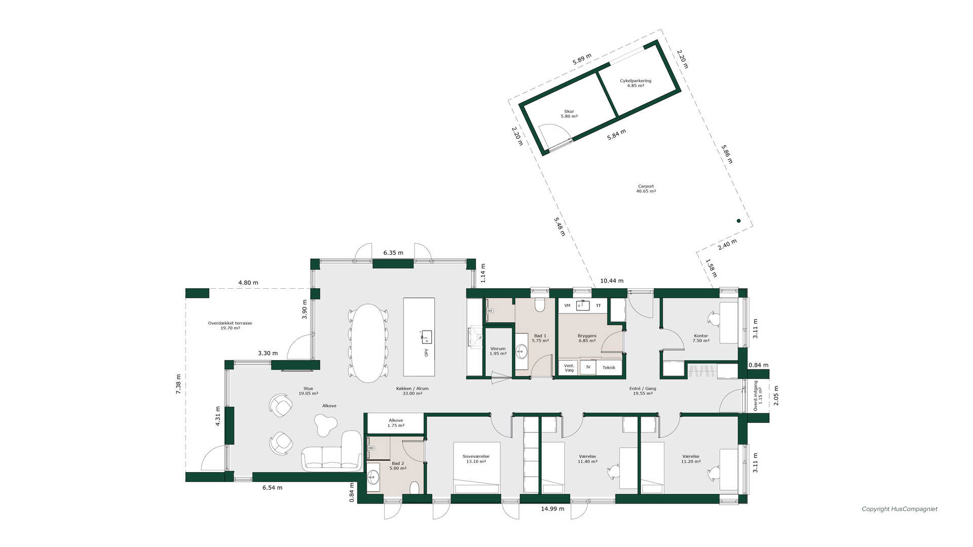 Et lækkert vinkelhus hvor planløsningen byder på gode detaljer som stor overdækket terrasse, vinrum, alkove, indbygget opbevaring og overdækket indgang.