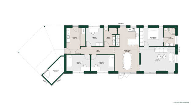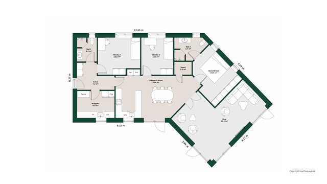 Skøn planløsning der giver hele to overdækkede terrasser. Fra carport er der direkte adgang til entré og rummeligt bryggers. Tre gode værelser ligger i forbindelse med åbent og lyst køkken/alrum, der byder på køkkenø og udgang til de to terrasser. I forlængelse af stuen, der har både siddebænk og mulighed for biopejs findes stor forældreafdeling med walk-in og badeværelse.