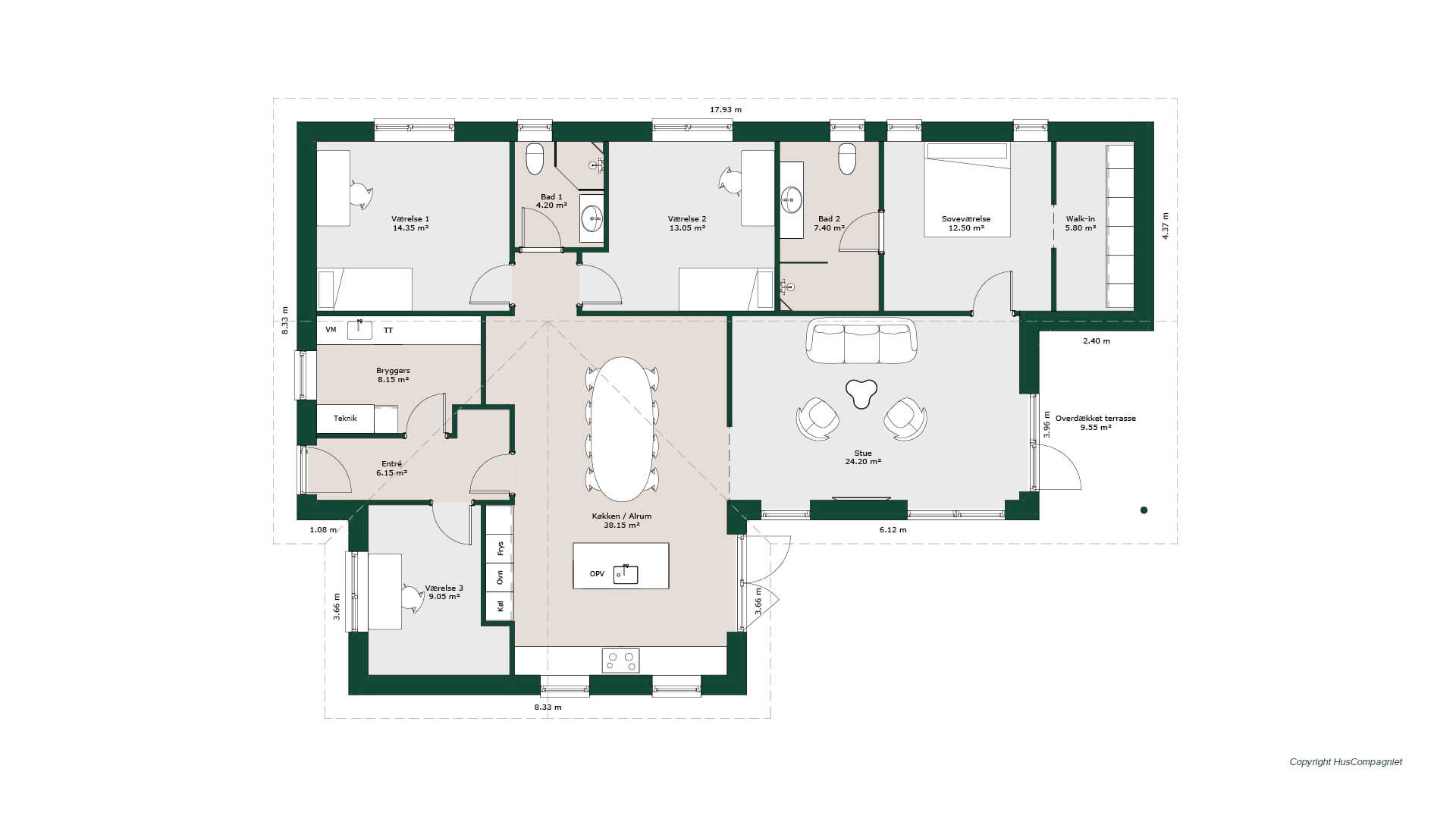 Her er plads til børnene - store værelser og en helt igennem optimeret planløsning med minimal gangplads. Her er plads til de pladskrævende børn og ikke mindst en skøn forældreafdeling, der byder på både stort badeværelse og walk-in. Køkken/alrummet er sammenhængende med stuen og skaber et naturligt samlingspunkt i huset. Herfra er der flere udgange til husets terrasser og den overdækkede terrasse sikrer de lange sommeraftener på terrassen.