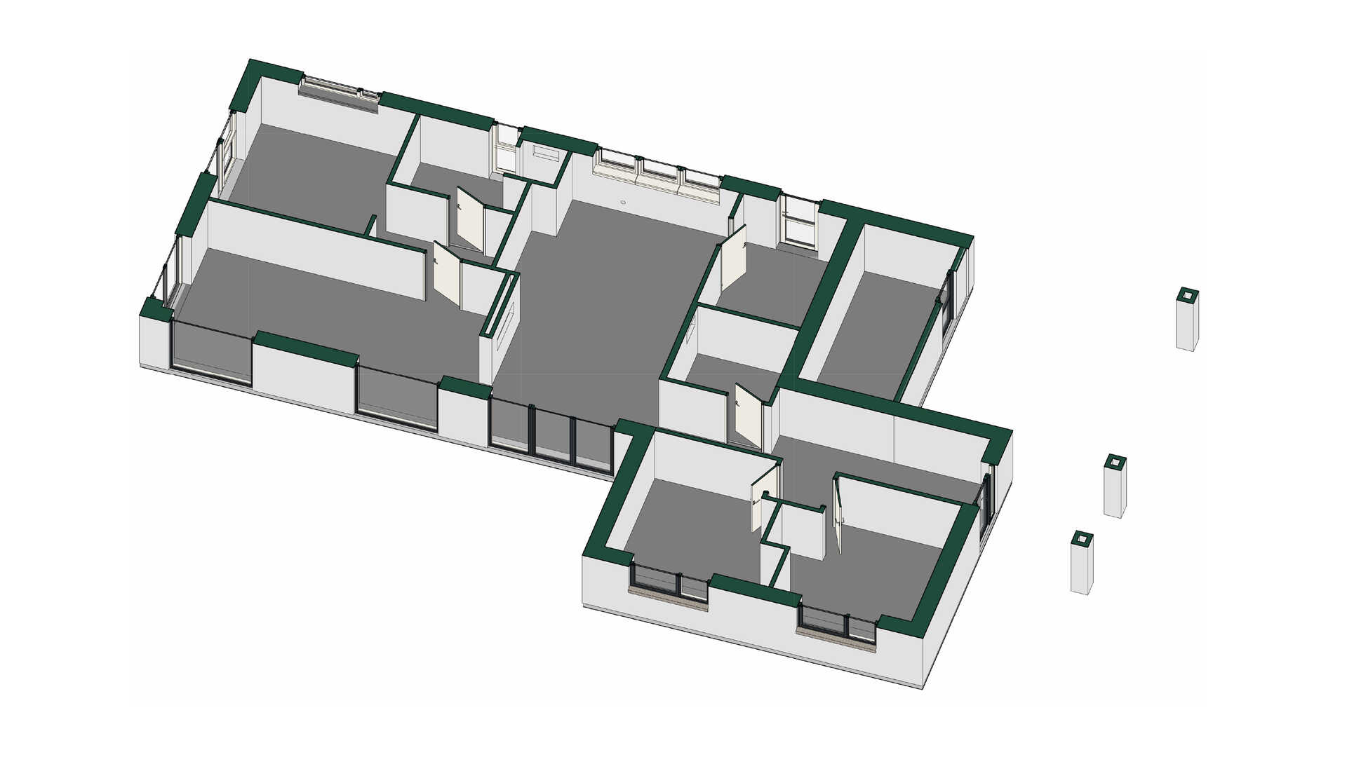 Dette vinkelhus byder på to store børneværelser, forældreafdeling, to badeværelse, entré med indbygget opbevaring og stort køkken/alrum med lysindfald fra to sider.