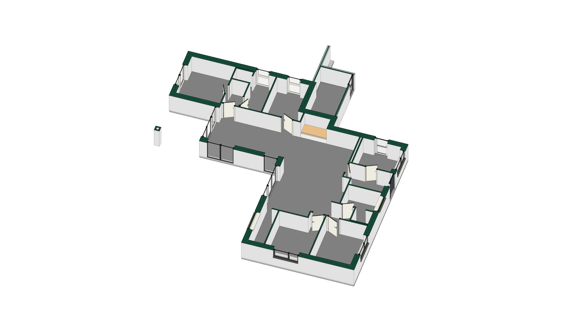 Stor forældreafdeling, kontor og to store børneværelser med eget bad.