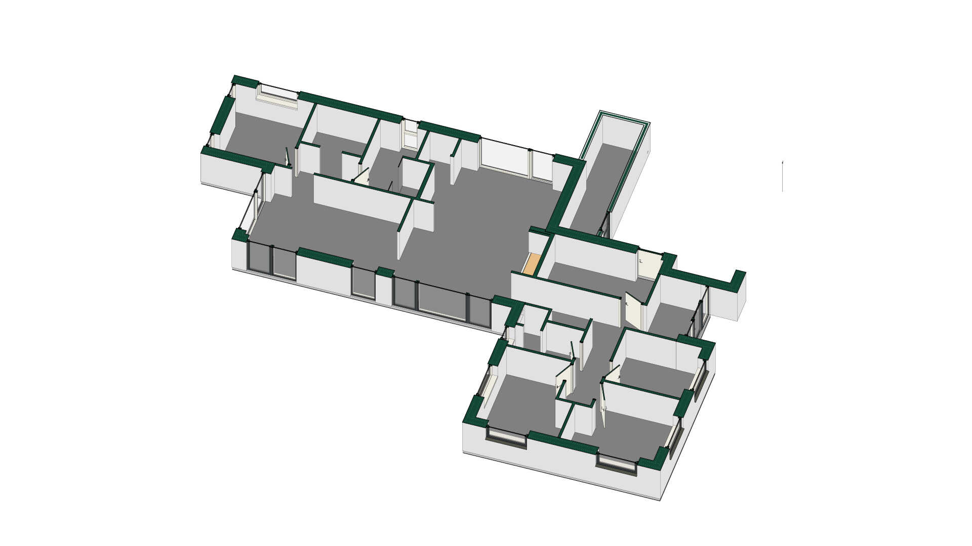 Huset rummer desuden et stort, rummeligt og lyst køkken/alrum med køkkenø og alkove, og direkte adgang til stue. Store glaspartier giver lys og trækker naturen med ind i både stue og køkken/alrum. Fra stuen er der adgang til forældre soveværelse med walk-in og badeværelse med dobbelt bruseniche.