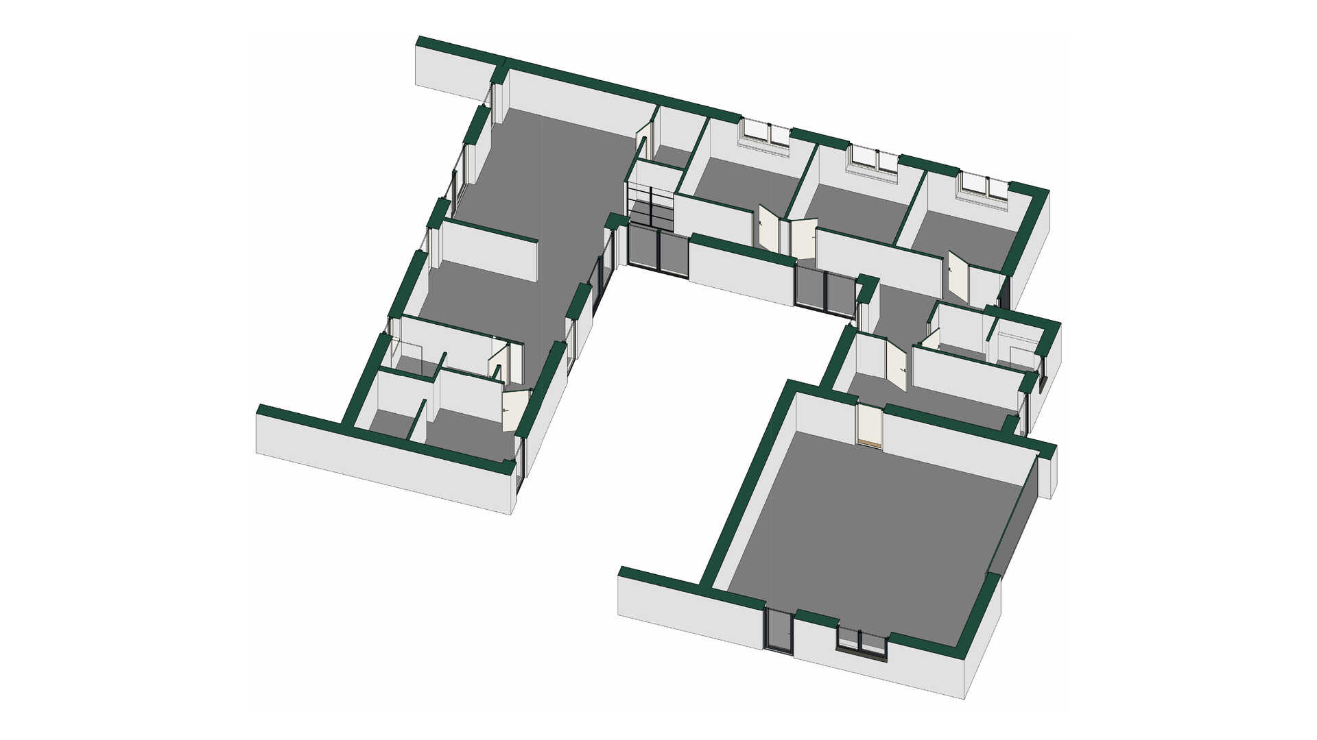 En anderledes planløsning med dobbelt vinkel og en stor overdækket terrasse i hele husets længde og unik mulighed for at skabe gårdhave mellem vinklerne.