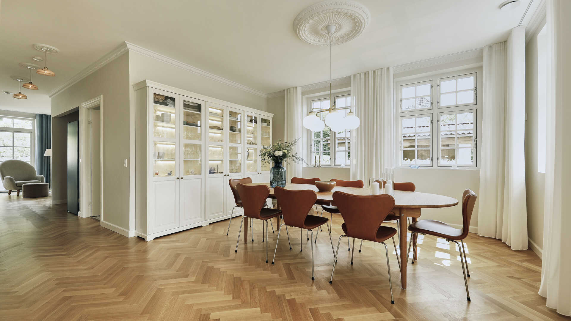 ”Vores hjem er en banegård, hvor døren altid er åben for venner og familie. Her er ofte fyldt af mennesker, hvilket sagtens kan gå hånd i hånd med, at vi har kredset rigtig meget for detaljen og æstetikken,” forklarer Carina, som understreger, at den gennemførte æstetik netop er med til at gøre, at hun og familien føler sig hjemme i huset og kan slappe af. ”Vi har fokuseret på, at detaljerne får lov at stå frem på simpel og enkel vis. Det skaber en ro for os, at det er dejligt og lækkert at se på.”
