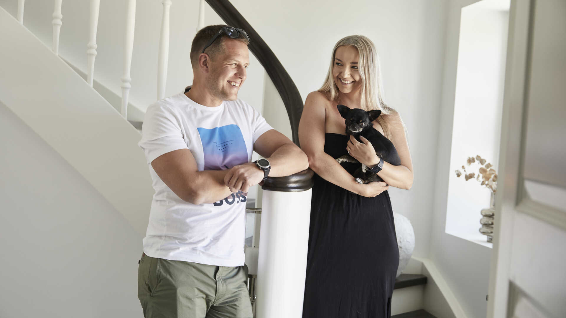 Til spørgsmålet om, hvordan de opnår det, lyder svaret, at der skal være både ro og rene linjer. Og til det næste spørgsmål om, hvorvidt parret føler, at de har fået det i deres nybyggede hjem - en toplans-villa i palæstil på 227 kvadratmeter i et fredeligt kvarter – lyder der et klart og tydeligt ”ja!”