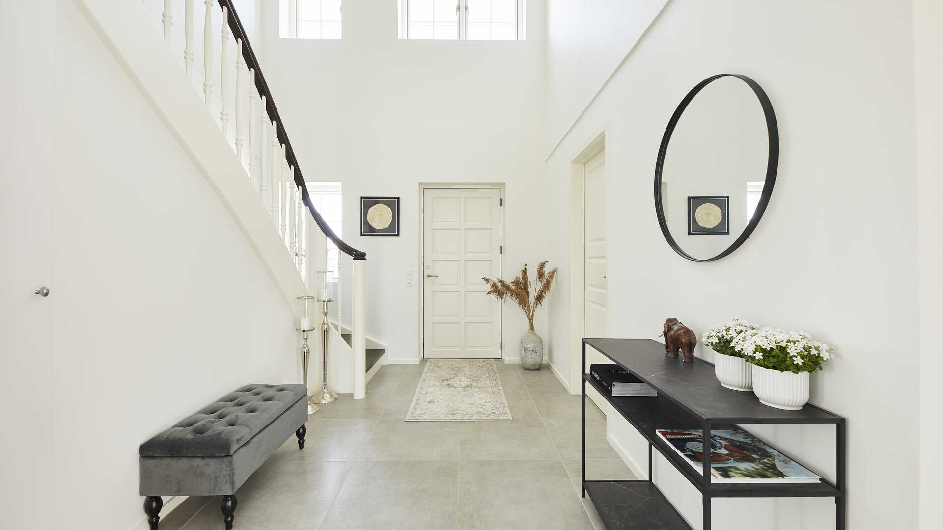 Da Lea og Michael indså, at deres gamle hus aldrig kunne blive præcis, som de gerne ville have det, og at de samtidig gerne ville skabe noget, der var deres 100 procent fælles projekt, besluttede de sig for at bygge nyt. Kom med på besøg i deres flotte palæ med en hall og en trappe, der siger sparto.